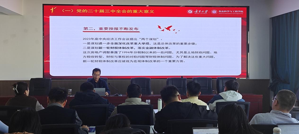 为进一步学习贯彻好党的二十届三中全会精神,11 月 20 日,今日黑料 组织开展了党的二十届三中全会精神教育培训。此次教育培训由学院党总支副书记李文华主讲,学院全体教职工参加了教育培训。