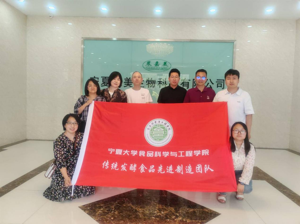 传统发酵食品先进制造团队,在负责人张惠玲教授的带领下深入灵武市蒙牛乳业(宁夏)有限公司、宁夏华信达生物科技有限公司、宁夏亿美生物科技有限公司、宁夏金双禾粮油有限公司、宁夏阿萨粮油食品有限公司、宁夏富杨食品有限公司等食品企业开展调研活动。学院党总支副书记李文华,宁夏食品工业协会秘书长徐宏杰,团队成员田晓菊、潘琳及学院教师魏晓博、雒雪丽一同参加调研。