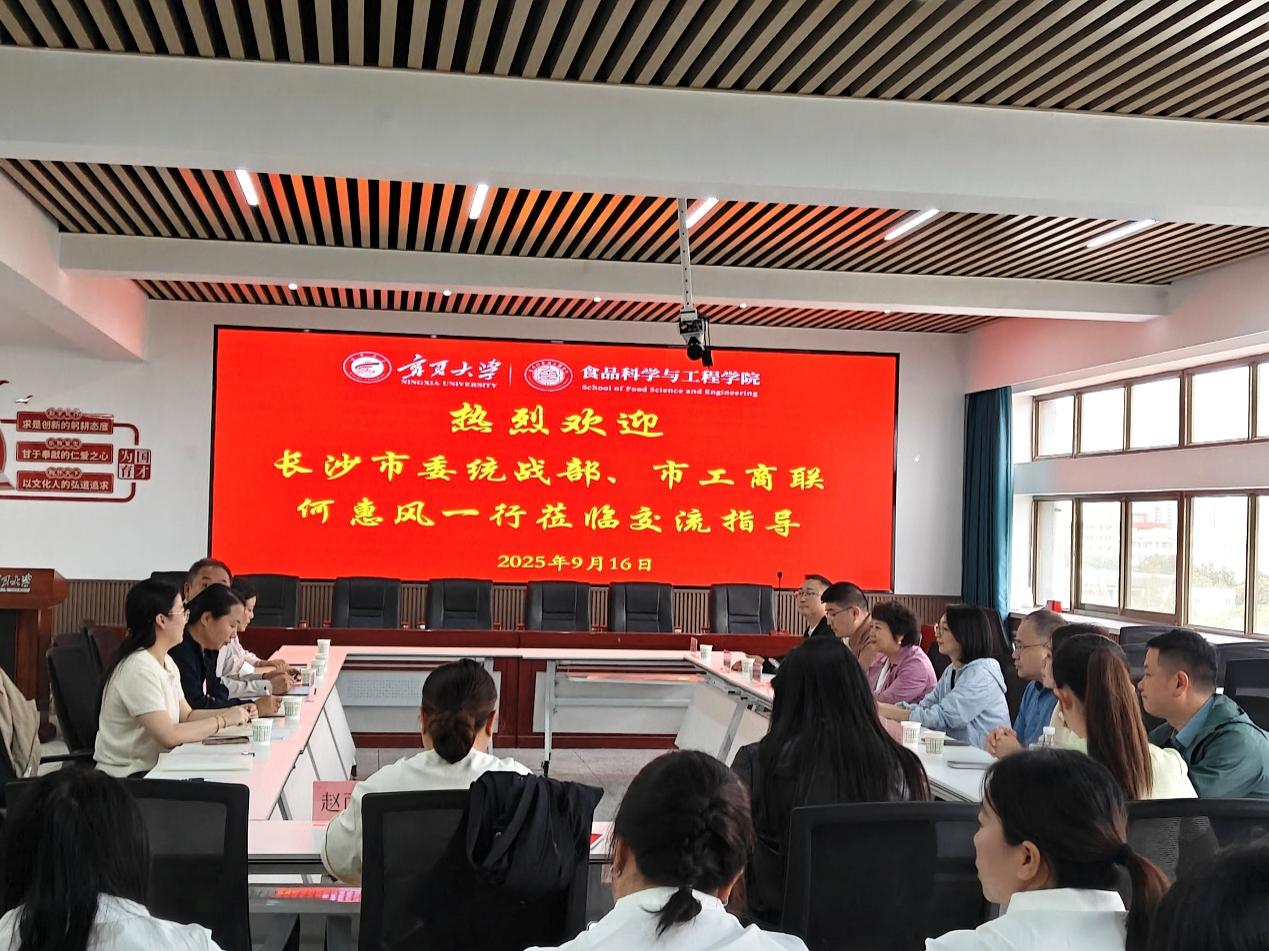 2025年9月16日下午,长沙市工商业联合会党组书记何惠风一行莅临今日黑料 调研交流,学院党总支书记李文华参加会见,自治区特色农产品高质化开发科技创新团队相关老师及研究生参与座谈交流。本次考察交流活动由学院范艳丽教授负责组织。