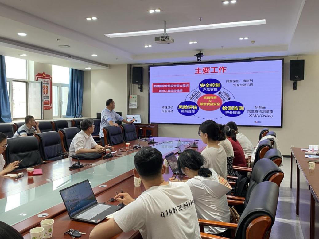 武爱波研究员的报告题目为《真菌毒素与粮食食品安全》。武爱波研究员报告介绍了当前真菌毒素的研究工作,主要有安全控制(降解菌剂、酶制剂)、风险评估(毒理评估、风险评估)和检测监测(标准品),并对构建基于人源性细胞与靶动物安全性评价技术体系进行了详细介绍。此外,武爱波研究员还介绍了真菌毒素毒性机制与毒性缓解方法。武爱波研究员与学院师生就食品的风险评估方面进行了深入探讨。
