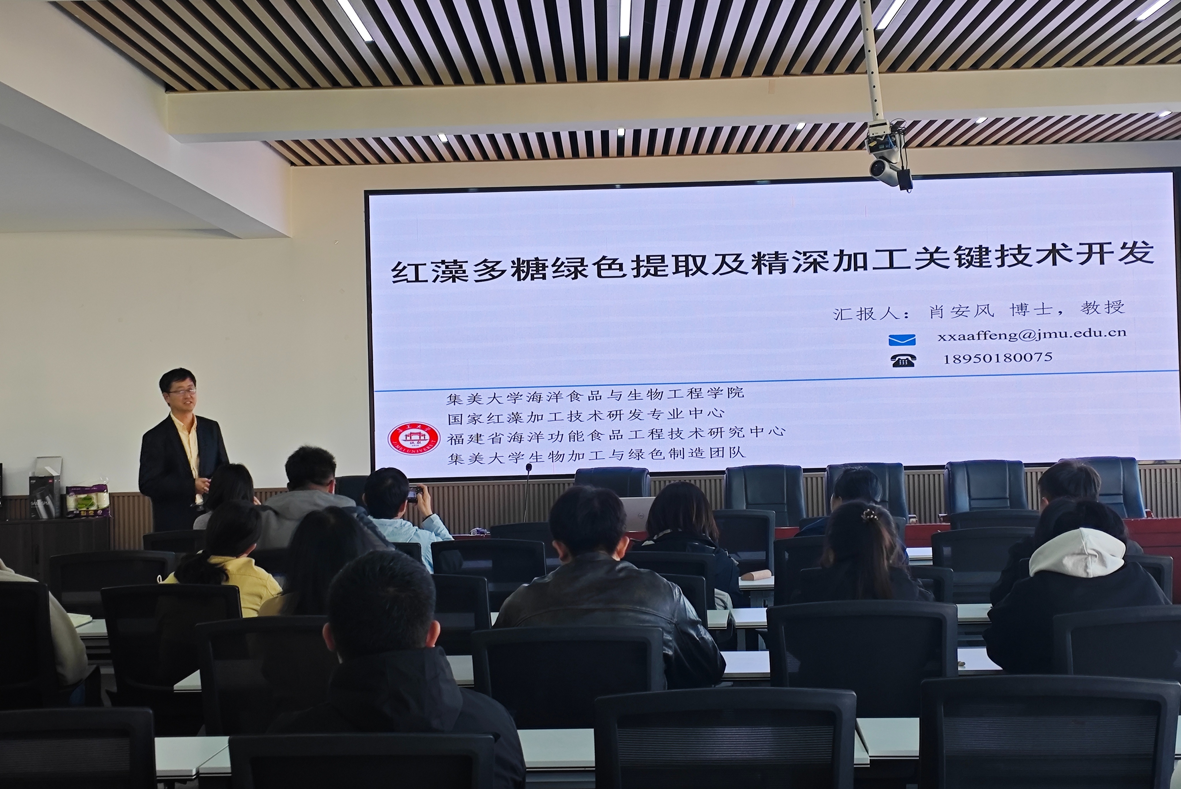 随后,肖安风教授做了题为“红藻多糖绿色提取及精深加工关键技术开发”的报告。肖教授首先介绍了琼脂/卡拉胶加工产业存在的瓶颈问题,然后就红藻多糖绿色提取工艺和高值化加工技术两个方面的研究成果进行了分享。同时,他还分享了团队在琼脂糖产业化方面的成功案例和经验,为各位师生提供了宝贵的参考和启示。