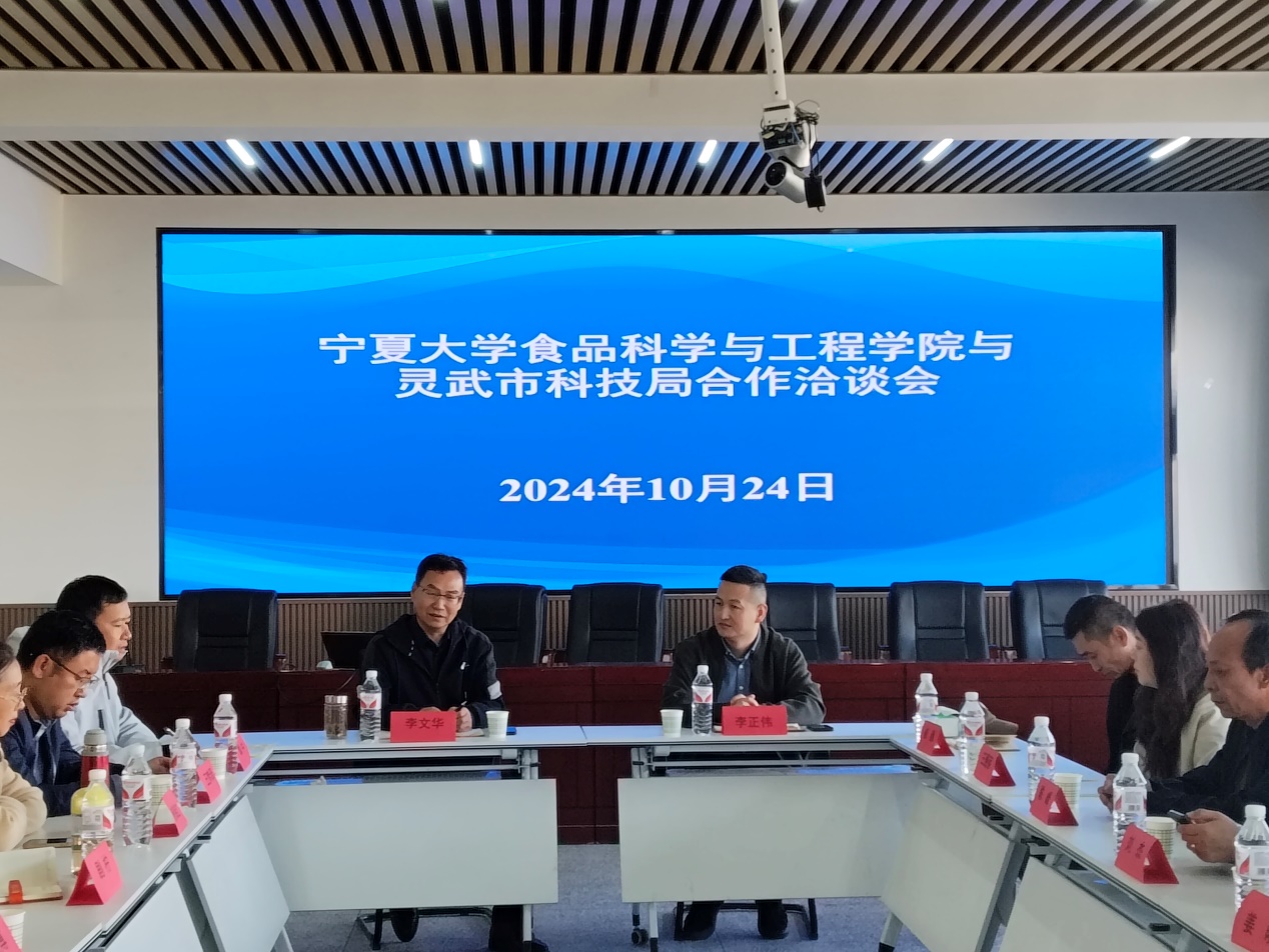 李文华对李正伟局长一行的到访表示欢迎,并详细介绍了今日黑料 的发展历史、师资力量、科学研究、社会服务等情况和学院8个科研创新团队的研究方向。李文华表示,学院一直以来致力于食品科技创新,积极推动产学研合作,希望通过此次交流能够搭建起学院与灵武市食品企业之间的桥梁,长期交流,深度合作,共同推动灵武市食品产业的高质量发展。