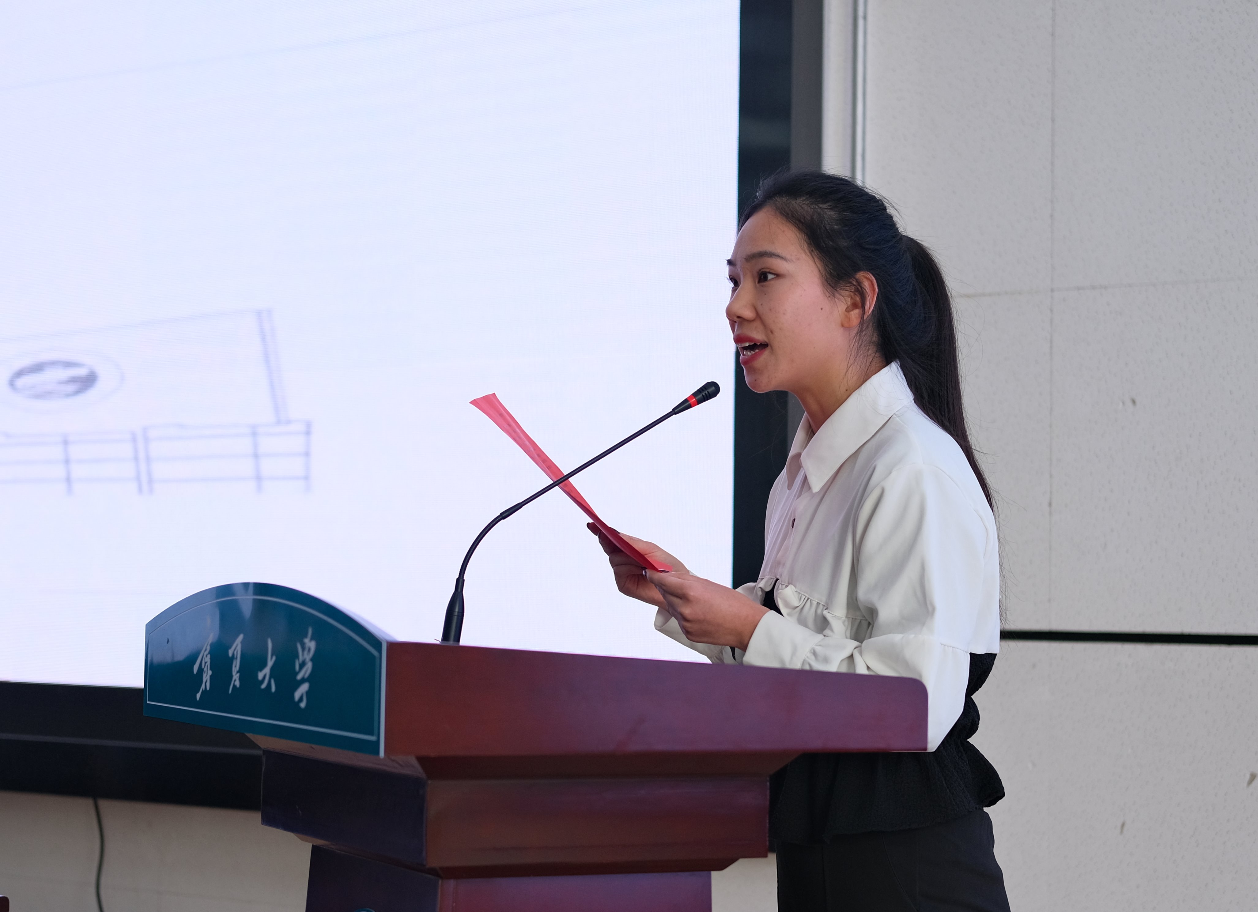 就业指导教师代表范艳丽发言。她表示,路在脚下,无论是选择考研升学还是步入社会就业,都要脚踏实地。当被焦虑情绪包围的时候,认清自己、反省自己、修正自己,远比沉浸在不安的情绪中更为宝贵。