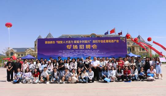 葡萄酒与园艺学院和自治区人力资源和社会保障厅、宁夏贺兰山东麓葡萄酒产业园区管理委员会、吴忠市人民政府、红寺堡区人民政府、宁夏葡萄酒与防沙治沙职业技术学院主办的青铜峡市“凝聚人才活力 赋能乡村振兴”高校毕业生葡萄酒产业专场招聘会在宁夏青铜峡市密登堡酒庄举行。