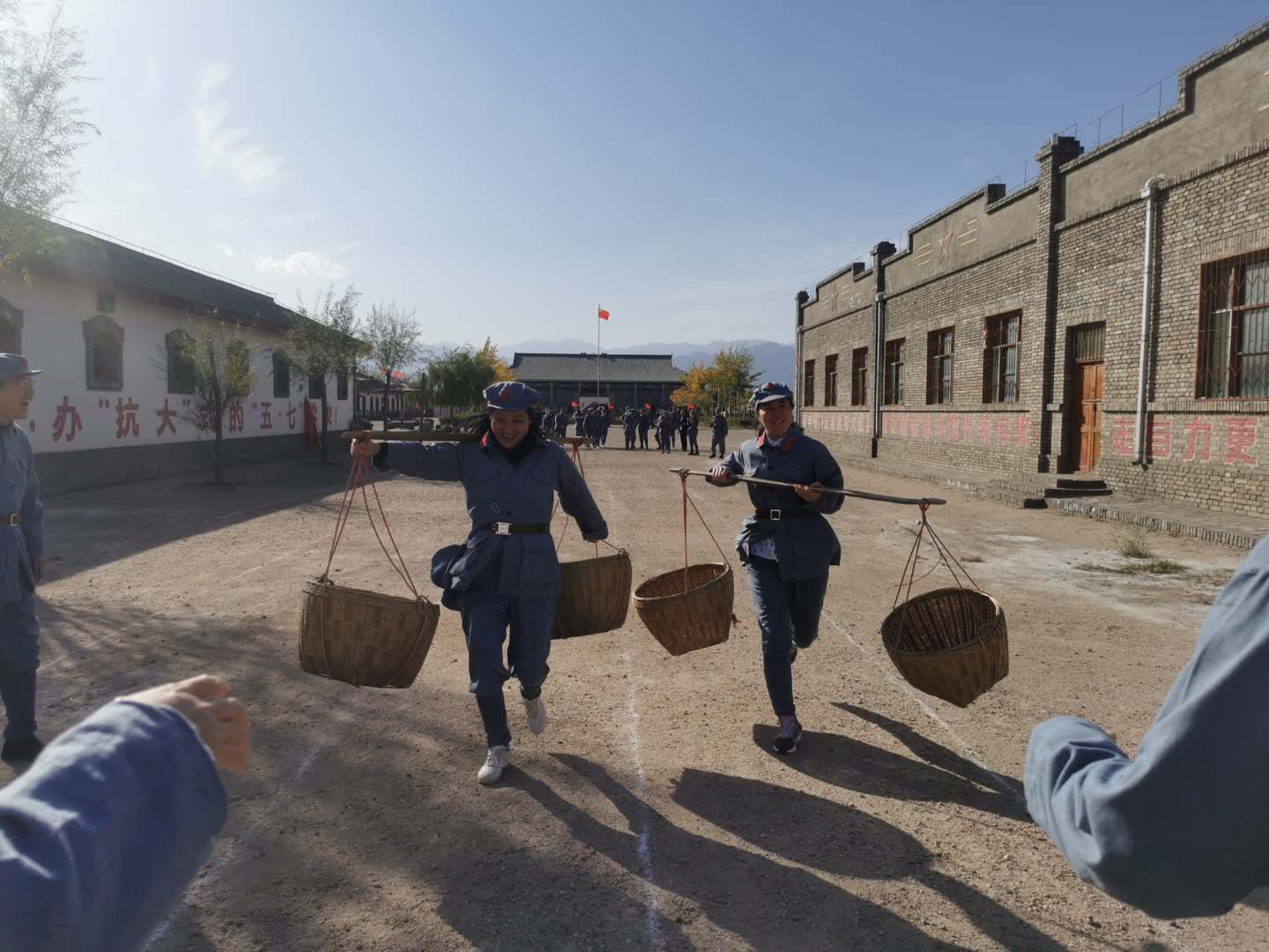 参观陈列馆,听讲解:听讲解员讲述干校的沧海桑田,了解老一辈们在艰苦环境中劳动、生活、学习情况,让大家一起重温历史,切实增强吃苦耐劳、艰苦奋斗精神和历史使命感、社会责任感。之后进行了拉架子车比赛:老一辈人拉架子车春耕秋收,推粮送面,进而为祖国的稳定发展打下了良好基础,而今,让我们拉起架子车,稳抓稳打炼意志,一心一意跟党走。