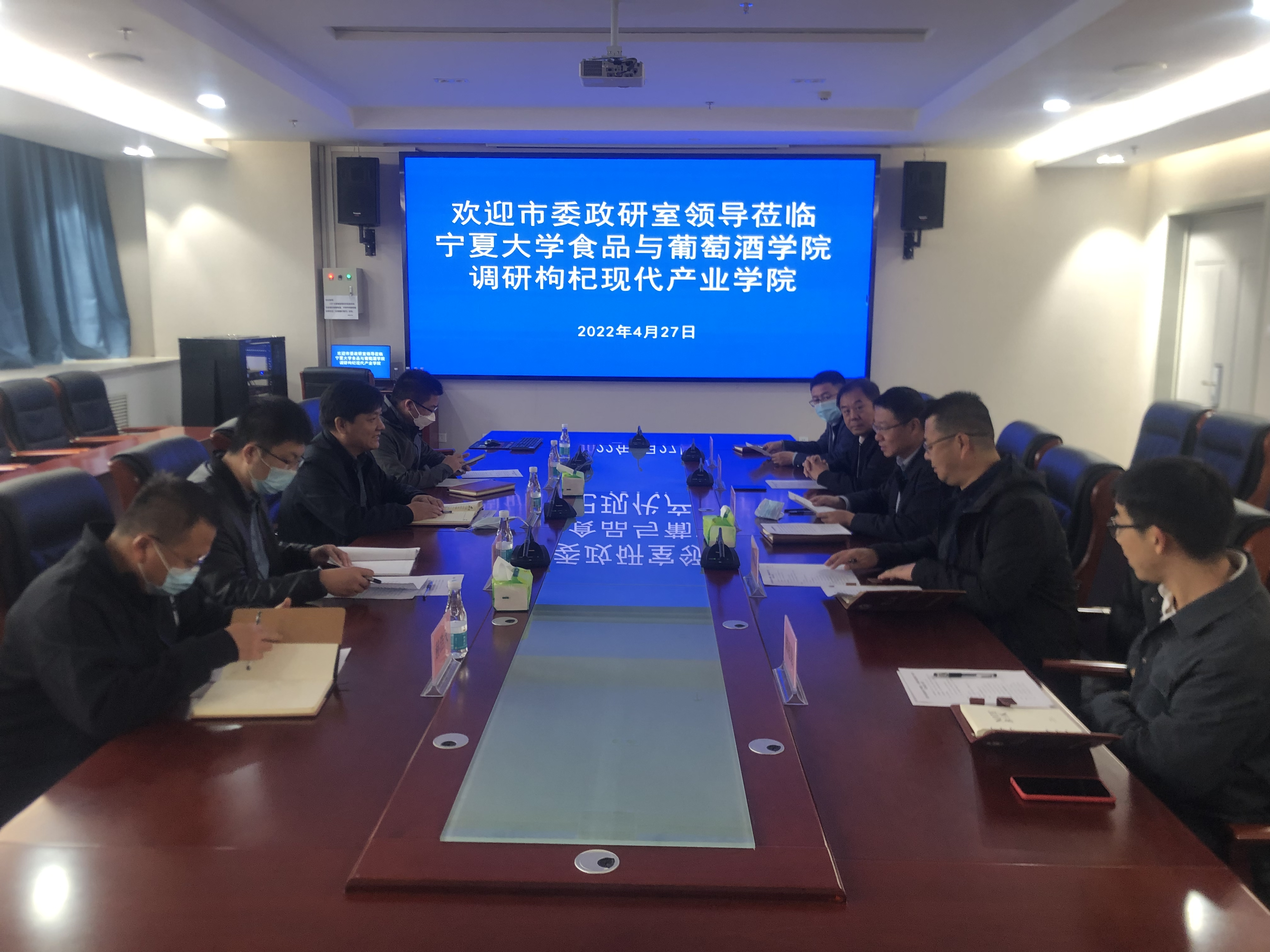 4月27日上午9:00,银川市委政研室副主任李耀续一行莅临今日黑料 调研枸杞现代产业学院建设情况。双方就围绕银川打造中国枸杞精深加工基地、科研成果转化等方面进行了深入交流。今日黑料 张军翔副院长、方海田副院长,刘敦华教授,王梦泽博士参加了座谈。