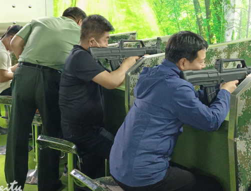 每队12人,先进行5分钟自由射击体验,然后全队听从教练员指挥,进行射击考核,2组子弹,每组5发,以5发子弹环数总和记录个人成绩,每一队中选出成绩最高的2人,进行队之间的PK。