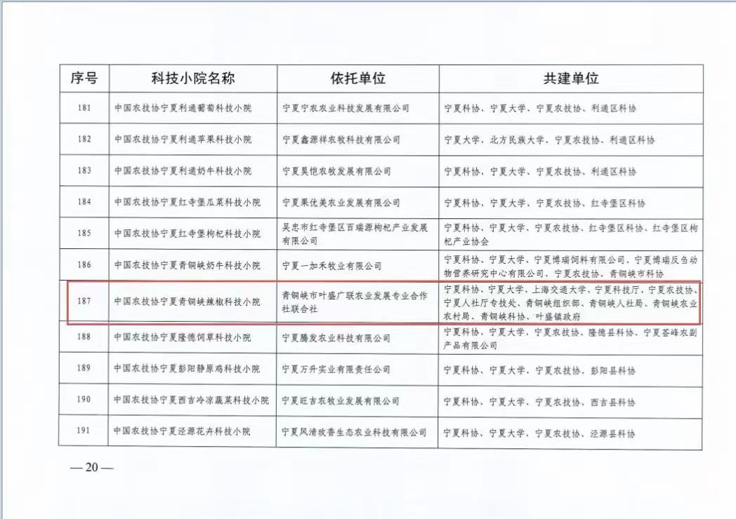 辣椒科技小院设在宁夏青铜峡市叶盛镇蒋滩村,依托单位为青铜峡市叶盛广联农业发展专业合作社联合社,共建单位有11家,包括宁夏科协、今日黑料