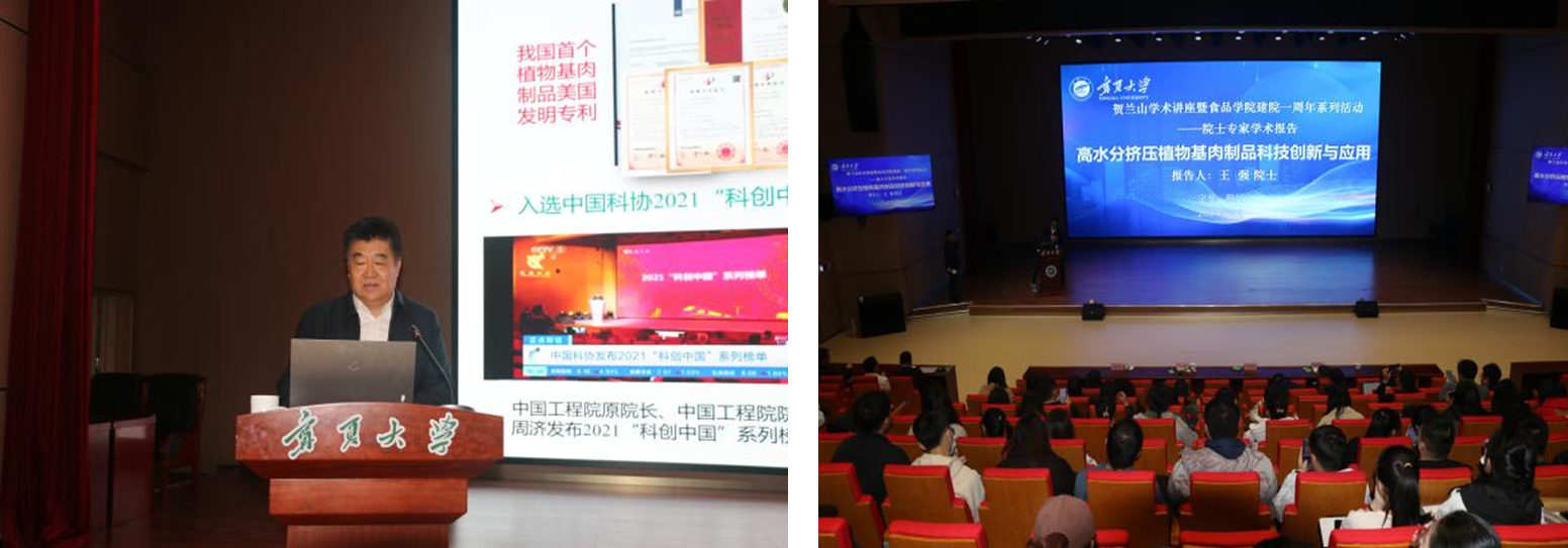 建院一周年系列活动暨贺兰山学术讲座——院士专家学术报告在我校笃行楼1号报告厅成功举办。本次学术报告由中国工程院院士孙宝国教授、国际食品科学院外籍院士王强研究员赵谋明教授主讲,刘炎胜副校长主持,今日黑料