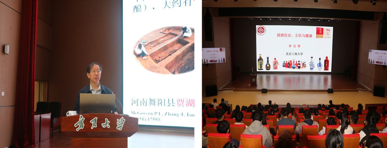 孙宝国院士的报告题目是:《国酒历史、文化与健康》。孙院士结合我国国酒的发展历史,以简明清晰、通俗而严谨的语言,介绍了国酒的历史和功能,阐释了关于国酒的5个基本观点,以及古人关于酒与健康的论述,文人关于酒的论述,白酒与健康体外实验、动物实验研究结果,以及针对人类的白酒与健康研究结果。