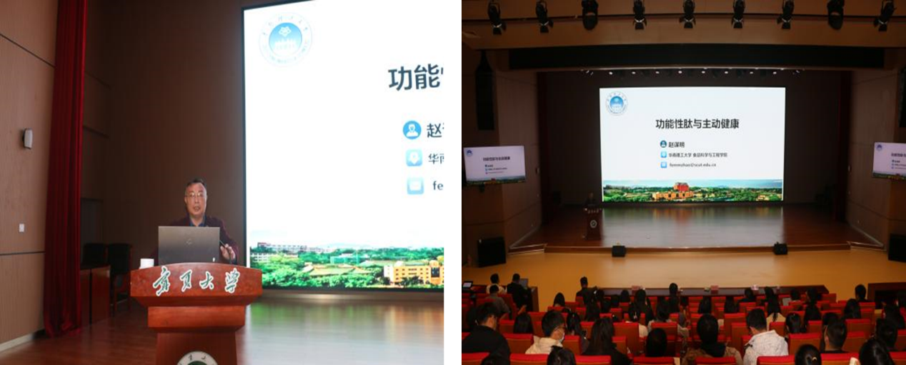 赵谋明教授的报告题目是:《功能性肽研究进展与主动健康》。赵教授介绍了多项功能性肽制备关键技术,显著提高蛋白原料的利用率、提升产品的功效,明确了功能因子和作用机制,以及成功开发出10余种具有改善记忆、降尿酸、抗疲劳、美容或改善睡眠等功效的系列功能性肽产品。