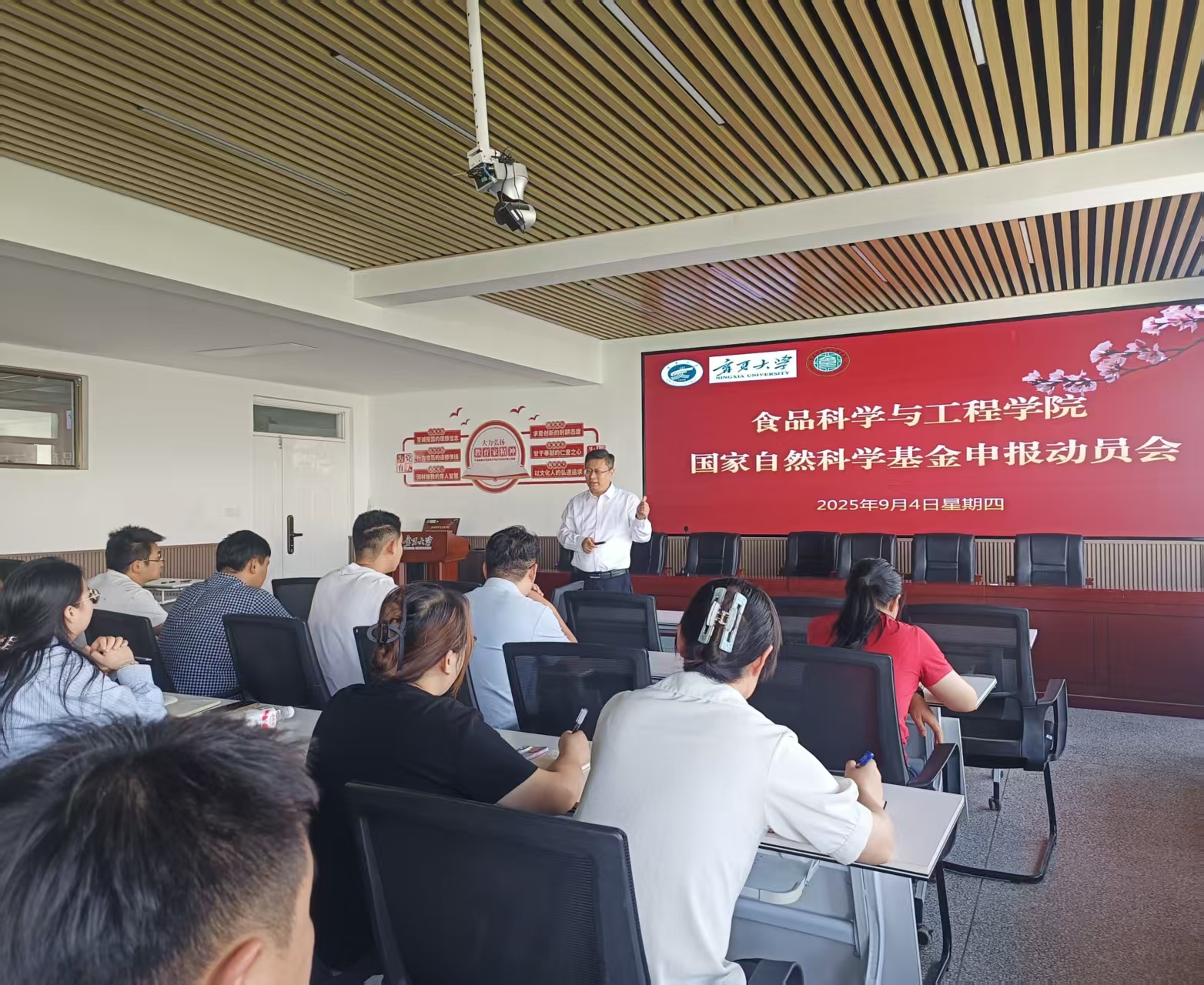 骨干教师和青年教师参会。本次会议旨在总结2025年国家自然科学基金申报和立项情况,并对2026年的申报工作明确方向、凝聚力量做了动员。