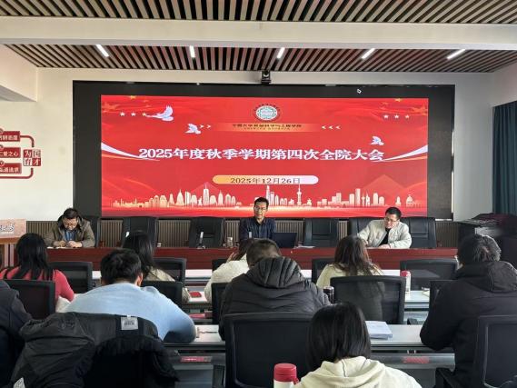 2025.12.2812月26日下午,食品科学与工程学院2025年秋季学期第四次全院大会在明远楼512会议室召开,对2025年度学院各项工作进行系统总结,并对2026年重点工作进行谋划部署。会议由学院党总支书记李文华主持,全体教职工参加会议。会议首先开展了团队负责人年度考核汇报。学院各教学团队科研负责人刘源、刘贵珊、方海田、王松磊依次作年度述职,围绕团队负责人履职成效、代表性成果产出、社会服务开展以及年度KPI完成情况进行了全面汇报,系统展示了各团队在人才培养、科学研究和服务地方经济社会发展等方面取得的阶段性成果。随后,会议进入学院工作年度总结与2026年工作规划环节。刘源院长围绕博士点申报、师资队伍引育、科研项目推进和专业建设等方面,对学院2025年度整体工作进行了全面总结,并结合学院发展实际,对下一阶段重点工作作出部署,强调要以高水平学科建设为引领,持续夯实学院内涵发展基础。方海田副院长通报了学院2025年关键业绩指标完成情况,重点介绍了博士点申报材料系统整理、实验室整体搬迁与运行保障、实验室安全管理体系建设以及学位点建设和研究生培养等方面的工作进展,强调要持续提升科研平台运行效能和研究生培养质量。王松磊副院长围绕本科教学与专业建设工作,对2025年关键业绩指标完成情况进行了通报。学院专业顺利通过教育部工程教育专业认证专家组进校(线上)评估,成功主办“华信达”杯第三届宁夏大学生食品科技创新竞赛,获批宁夏回族自治区工业和信息化厅“202...